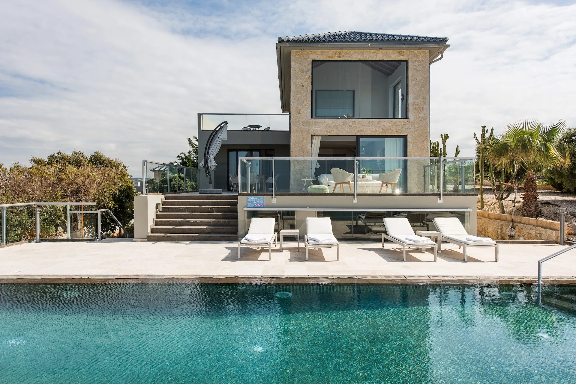 Erleben Sie die ultimative Entspannung in der Seafront Villa, einem luxuriösen Zufluchtsort am Rande des Hügels, der über folgende Ausstattung verfügt unvergleichliche Ausblicke auf das Meer und die Berge. Diese exquisite Villa auf dem Akrotiri-Halbinsel bietet reichlich Platz für bis zu acht Gäste, mit vier Doppelschlafzimmern mit eigenem Bad und zusätzlichen Unterkünften auf Anfrage.